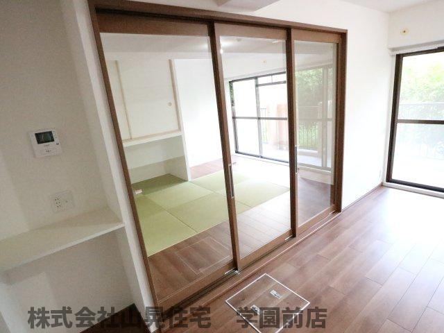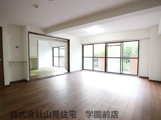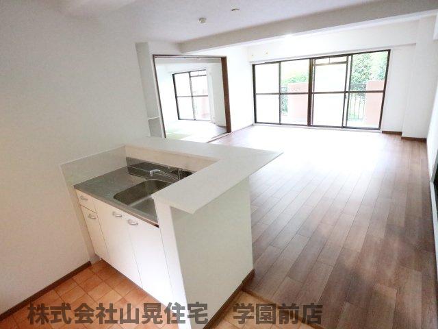 学園前駅徒歩9分★一級建築士がデザインしたワンランク上の上質空間(^^♪水回りは全て入替え済!壁紙、フローリング、建具も入替え済です!1階南向き角部屋のため日当り良好でお子様が遊べる専用庭付き!
