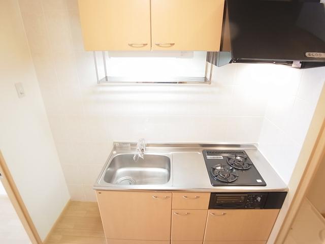 2階の角部屋のマンションタイプですので防音面も安心のお部屋ですよ!キッチンが広く2口ガスコンロつきで自炊もばっちり!独立の洗面台付きで朝の髪の毛のセットもできますよ!エアコン・TVインターホン付き。