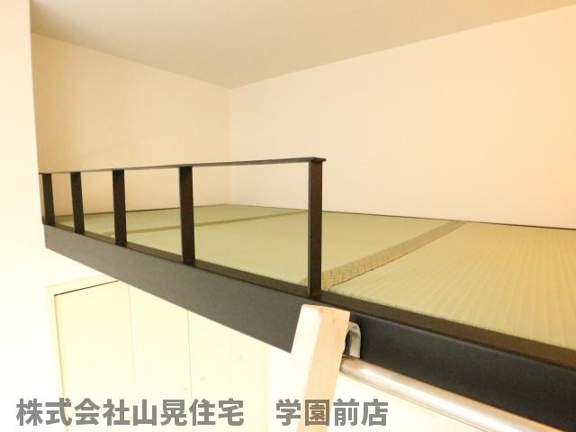 学園前駅徒歩10分の駅近、オートロック付、鉄筋マンションです。敷地内に大きな駐輪場がりバイク駐輪可です。ロフトがあり寝床にするも収納スペースにするもあなた次第!インターネット無料。最上階角部屋です。