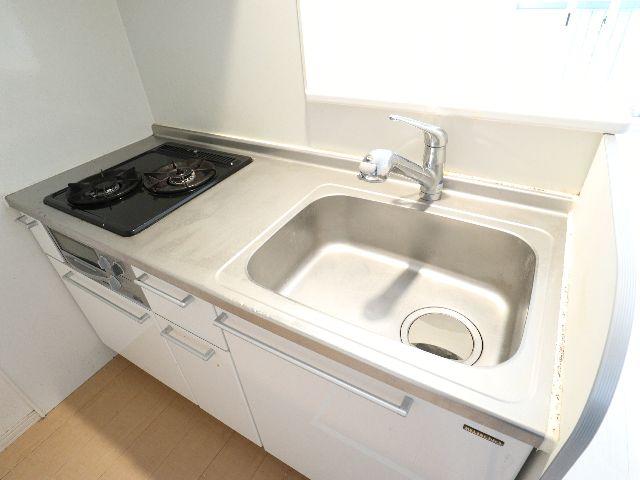 オートロック付のハイツです。女性の一人暮らしに大人気♪キッチンもガスコンロ2口つきでお料理好きの方にもおすすめですよ♪浴室乾燥・追い焚き・TVモニターホン・ウォシュレットと充実設備です♪目玉物件