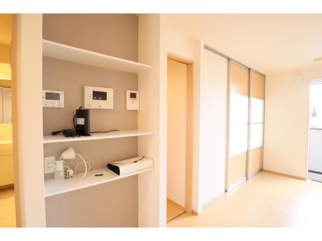 電気・オール電化・上水道(公営)・下水道(公共下水)・自転車置場・インターネット接続環境・エアコン・システムキッチン・カウンターキッチン・IH調理器付・浴室・シャワー・浴室換気乾燥機・シャンプードレッサー・給湯(追焚き機能)・洗濯置場(室内)・トイレ・温水洗浄便座・暖房便座・ベランダ・フローリング・TVインターホン・カードキー・下駄箱・ウォークインクローゼット・ゴミ置場 |