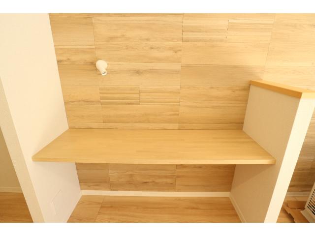 電気・LPガス・上水道(公営)・下水道(公共下水)・BS(受信可能)・CATV(受信可能)・オートロック・宅配ボックス・自転車置場・エアコン・システムキッチン・カウンターキッチン・ガスコンロ付・浴室・シャワー・浴室換気乾燥機・シャンプードレッサー・給湯(追焚き機能)・洗濯置場(室内)・トイレ・温水洗浄便座・暖房便座・テラス・専用庭・フローリング・TVインターホン・下駄箱・ウォークインクローゼット・ゴミ置場 |