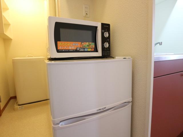 電気・LPガス・上水道(公営)・下水道(公共下水)・自転車置場・インターネット接続環境・エアコン・システムキッチン・電気コンロ付・浴室・シャワー・浴室換気乾燥機・給湯・洗濯置場(室内)・洗濯機・トイレ・温水洗浄便座・暖房便座・フローリング・TVインターホン・下駄箱・冷蔵庫・居室照明器具・ゴミ置場 |