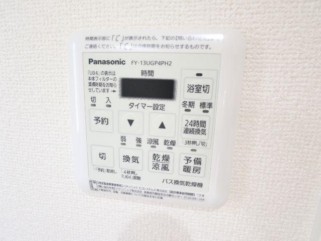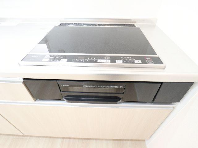 電気・都市ガス・上水道(公営)・下水道(浄化槽)・自転車置場・インターネット接続環境・エアコン・システムキッチン・カウンターキッチン・IH調理器付・浴室・シャワー・浴室換気乾燥機・シャンプードレッサー・給湯(追焚き機能)・洗濯置場(室内)・トイレ・温水洗浄便座・暖房便座・ベランダ・TVインターホン・下駄箱 |